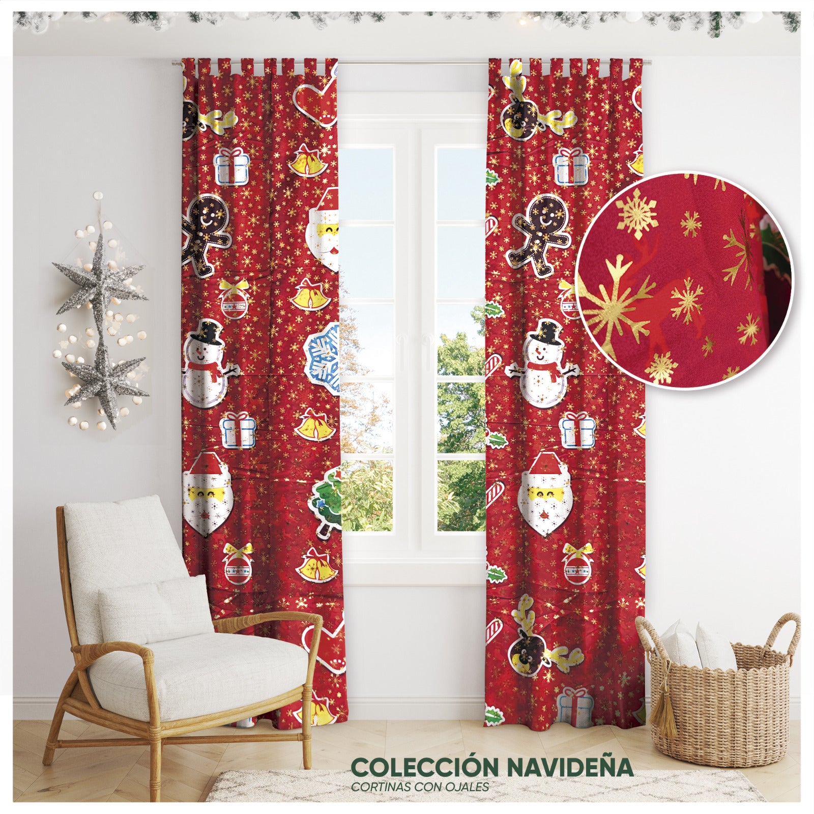 Nuestras cortinas navideñas son la perfecta opción para agregar un toque festivo a tu hogar. Con dos laterales de 1.35 x 2.10 metros, cubrirán tus ventanas con elegancia y sofisticación.
