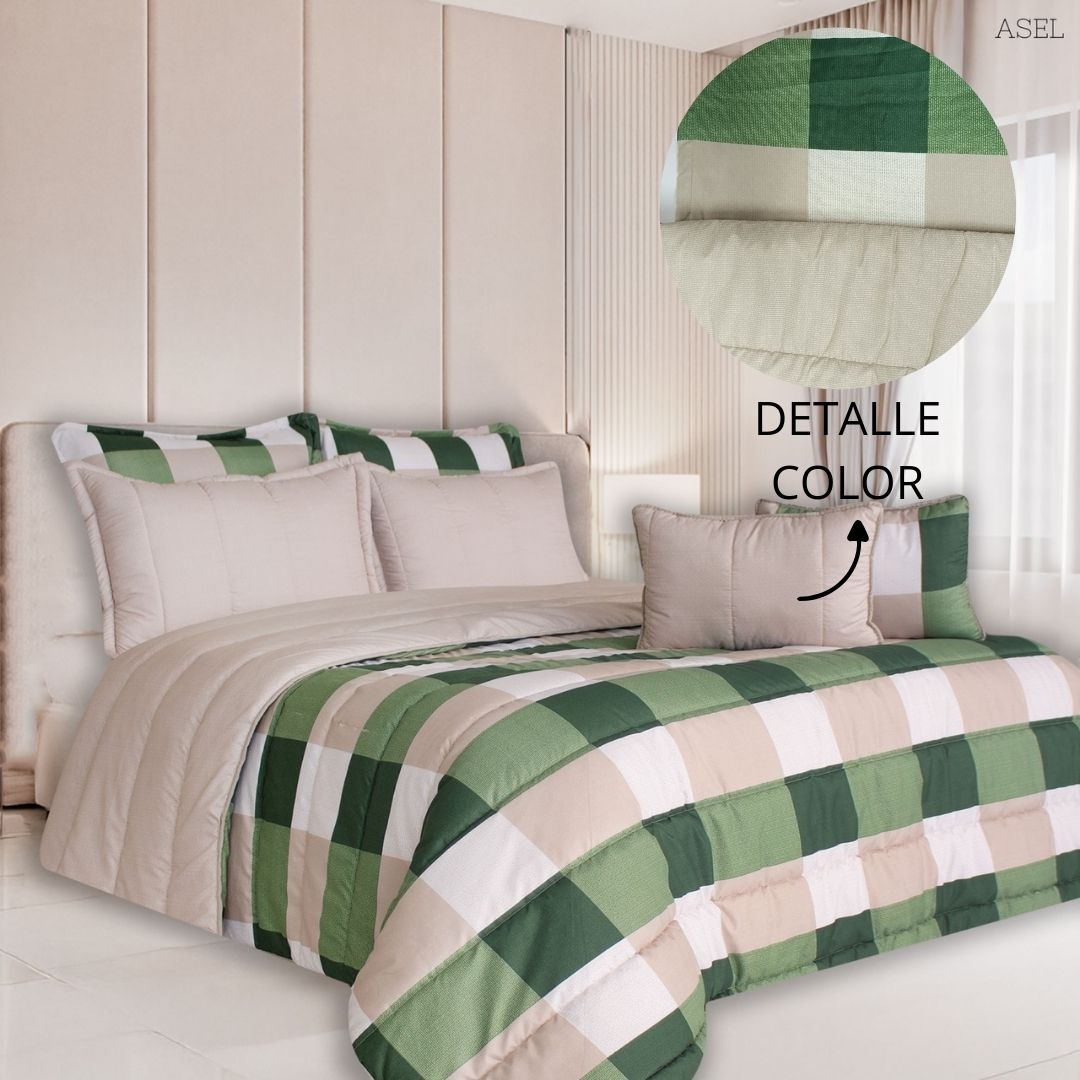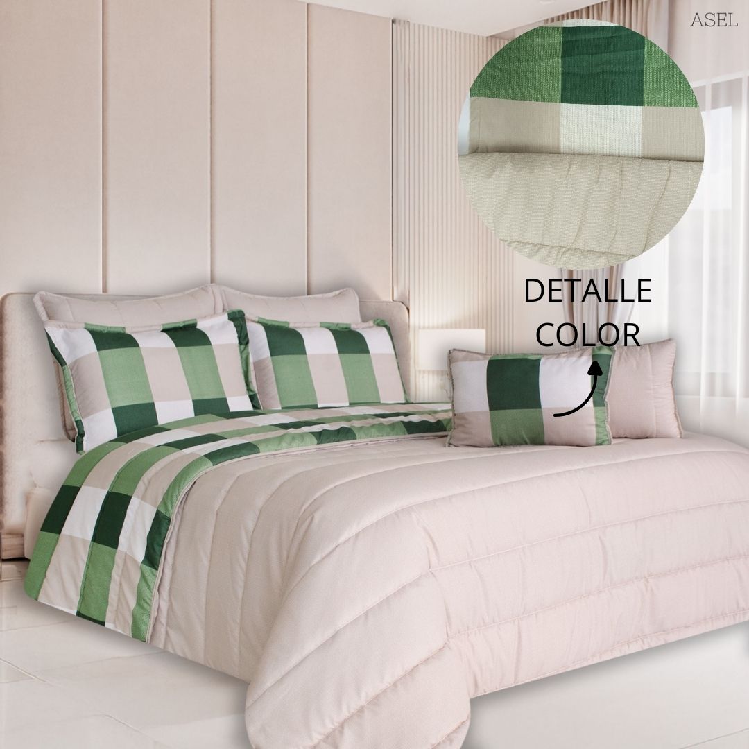 Descripción: Nuestro set de edredón doble faz te ofrece el más suave y cómodo juego de cama, diseñado con un relleno y una tela fresca para que puedas usarlo durante todo el año. Transforma completamente tu cama en un espacio acogedor para dormir con este completo set.