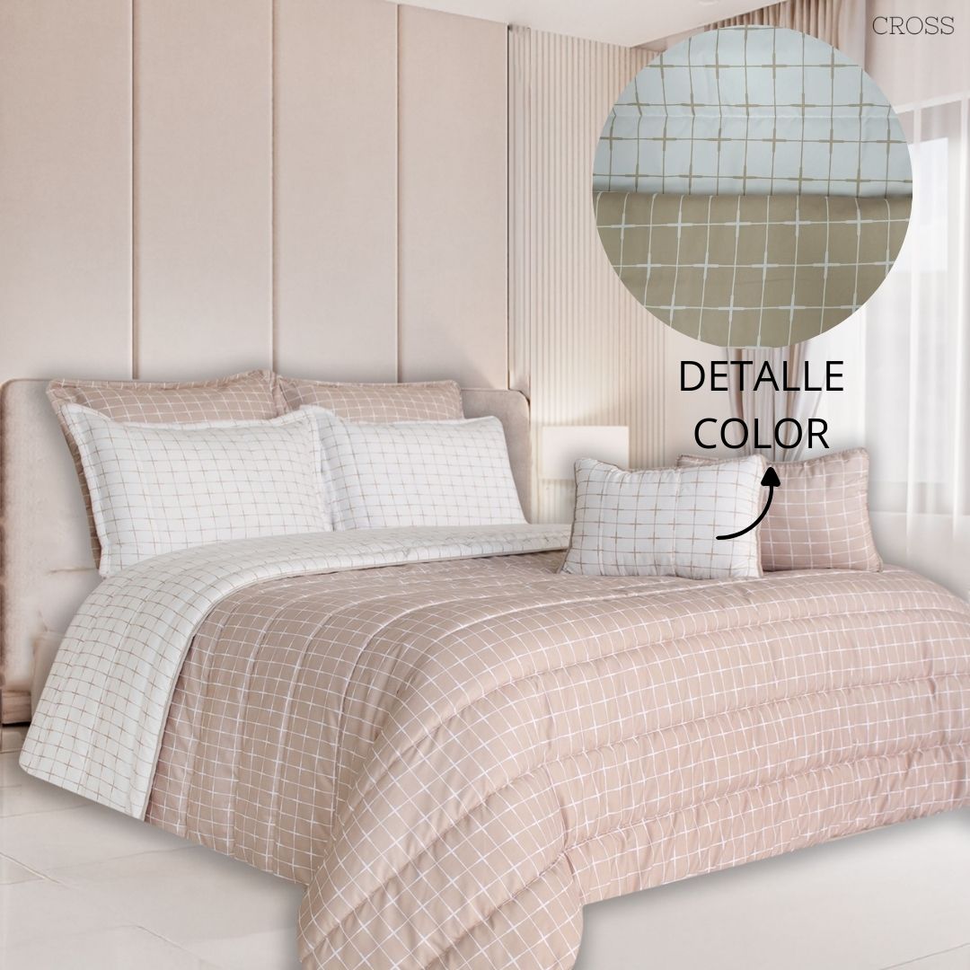 Descripción: Nuestro set de edredón doble faz te ofrece el más suave y cómodo juego de cama, diseñado con un relleno y una tela fresca para que puedas usarlo durante todo el año. Transforma completamente tu cama en un espacio acogedor para dormir con este completo set.